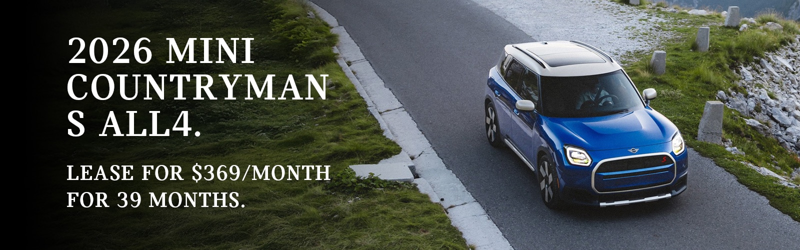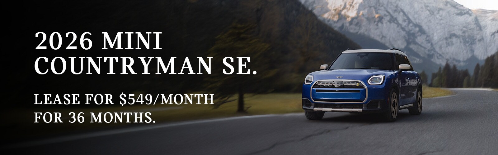 Through March 31, 2026, lease offer available on new 2026 MINI Countryman SE ALL4 models from participating MINI Dealers through MINI Financial Services, a Division of BMW Financial Services NA, LLC, to customers who meet MINI Financial Services' credit requirements. Offer not valid in Puerto Rico.
