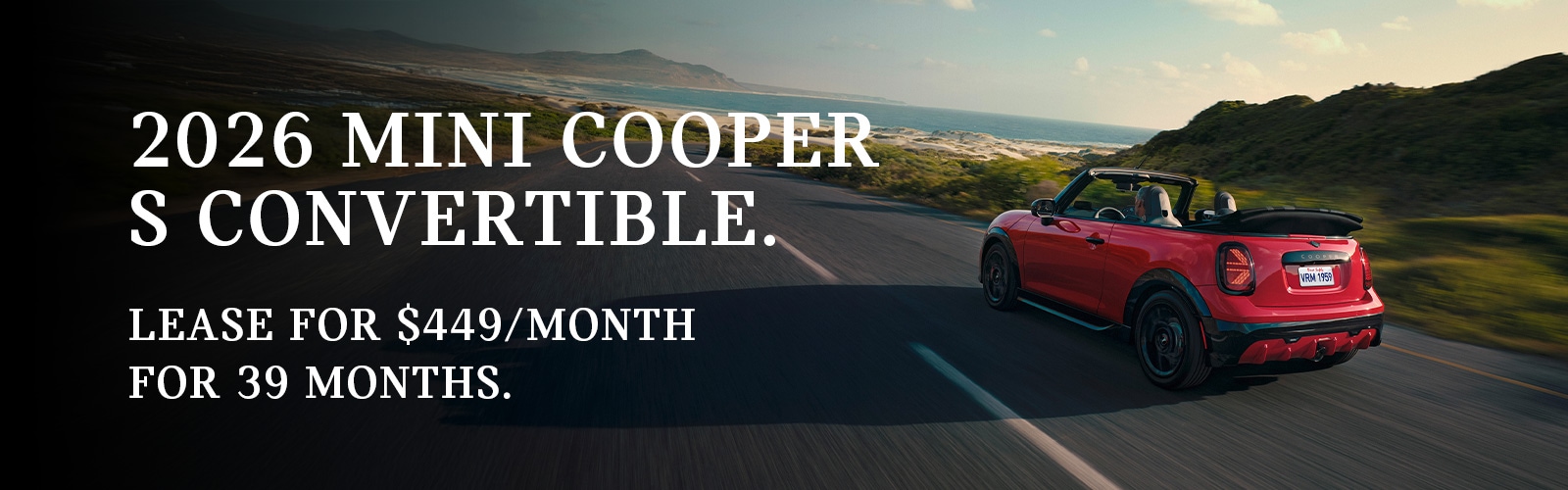 Through March 31, 2026, lease offer available on new 2026 MINI Cooper Hardtop 2 Door models from participating MINI Dealers through MINI Financial Services, a Division of BMW Financial Services NA, LLC, to customers who meet MINI Financial Services' credit requirements. Offer not valid in Puerto Rico.