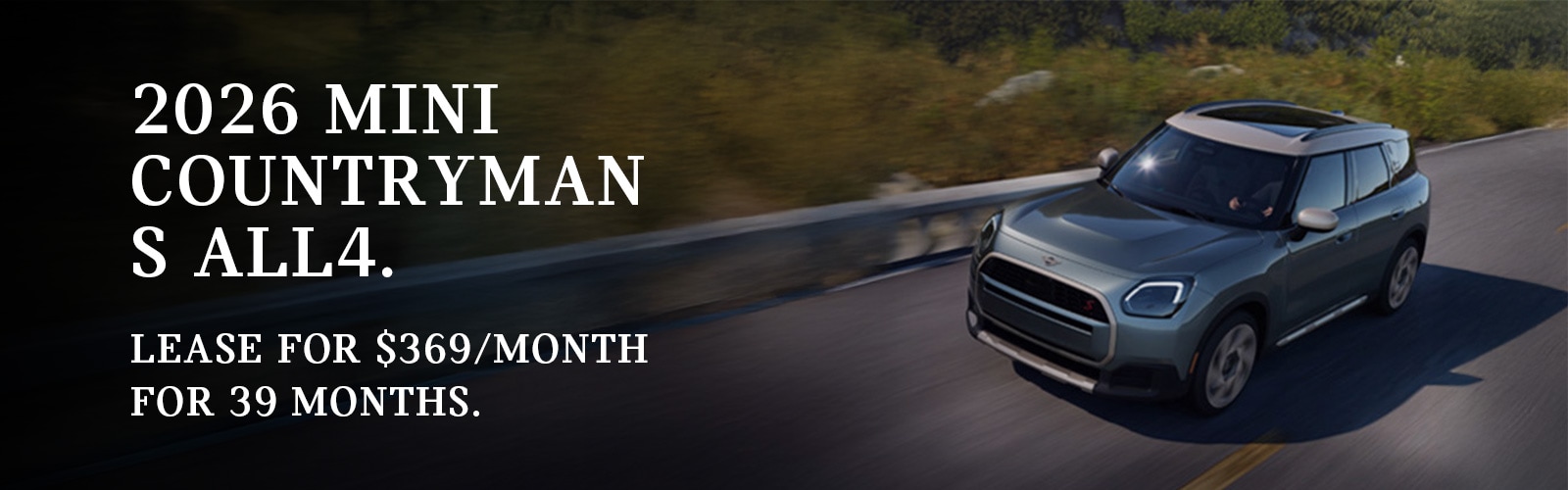 Through February 02, 2026, lease offer available on new 2026 MINI Countryman S ALL4 models from participating MINI Dealers through MINI Financial Services, a Division of BMW Financial Services NA, LLC, to customers who meet MINI Financial Services' credit requirements. Offer not valid in Puerto Rico.